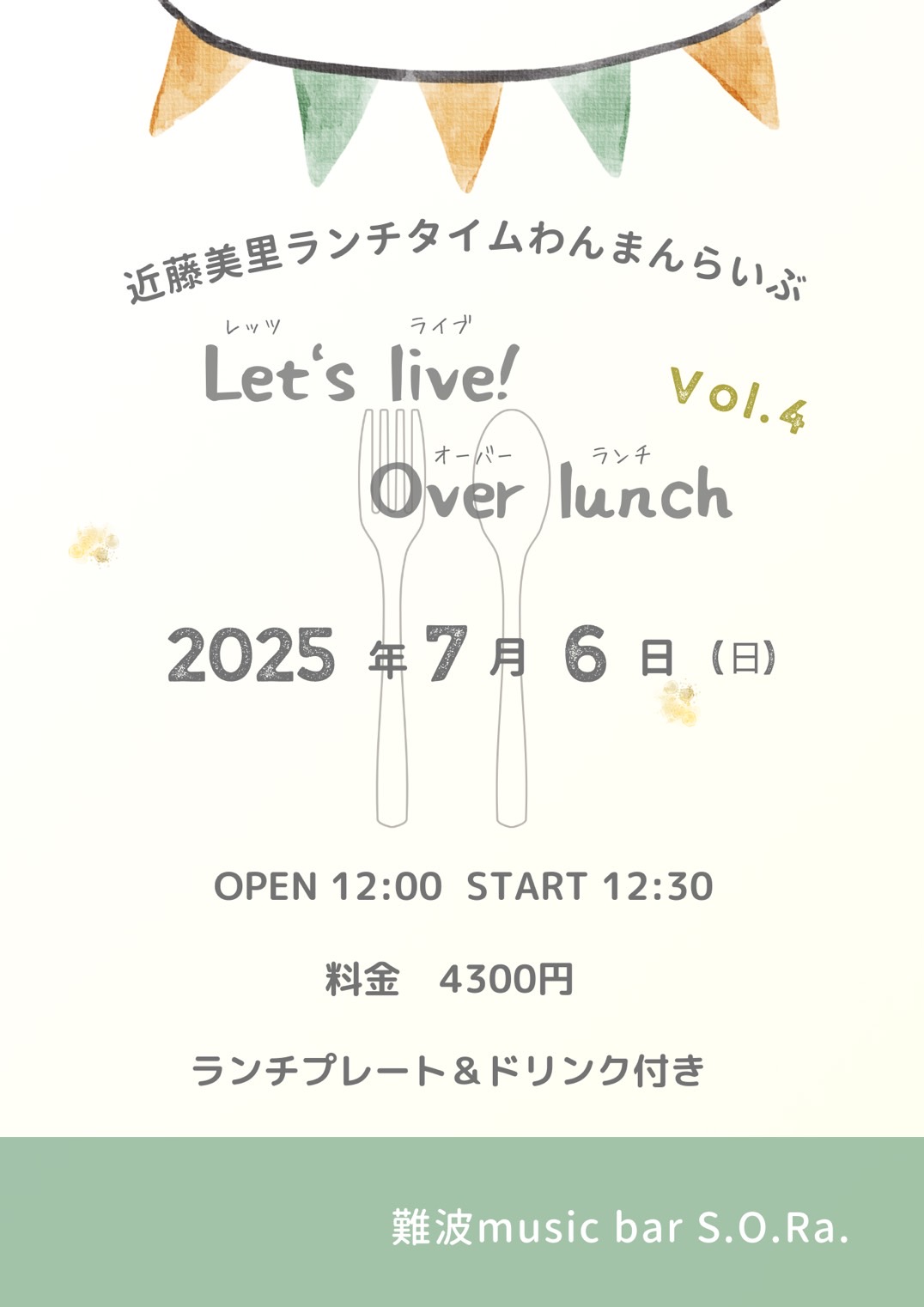 近藤美里ランチタイムわんまんらいぶ 「Let's live!Over lunch vol.4」 OPEN 12:00 START 12:30 料金 4300円 ランチプレート&ドリンク付き 出演:近藤美里